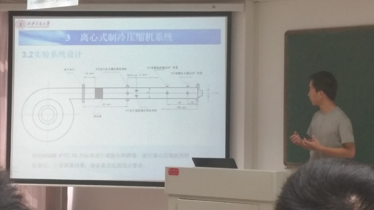 王同生同学本科毕业设计题目为“高速离心式制冷压缩机及其实验系统设计”,他结合自己在毕业设计中遇到的困难,阐述了离心式压缩机的设计参数与性能指标确定方法。与此同时,为了更好地完成企业布置的创新课题,王同生详细讲述了离心式压缩机的一维设计过程,他用一个个简单的实例,加深了大家对离心式压缩机的理解。