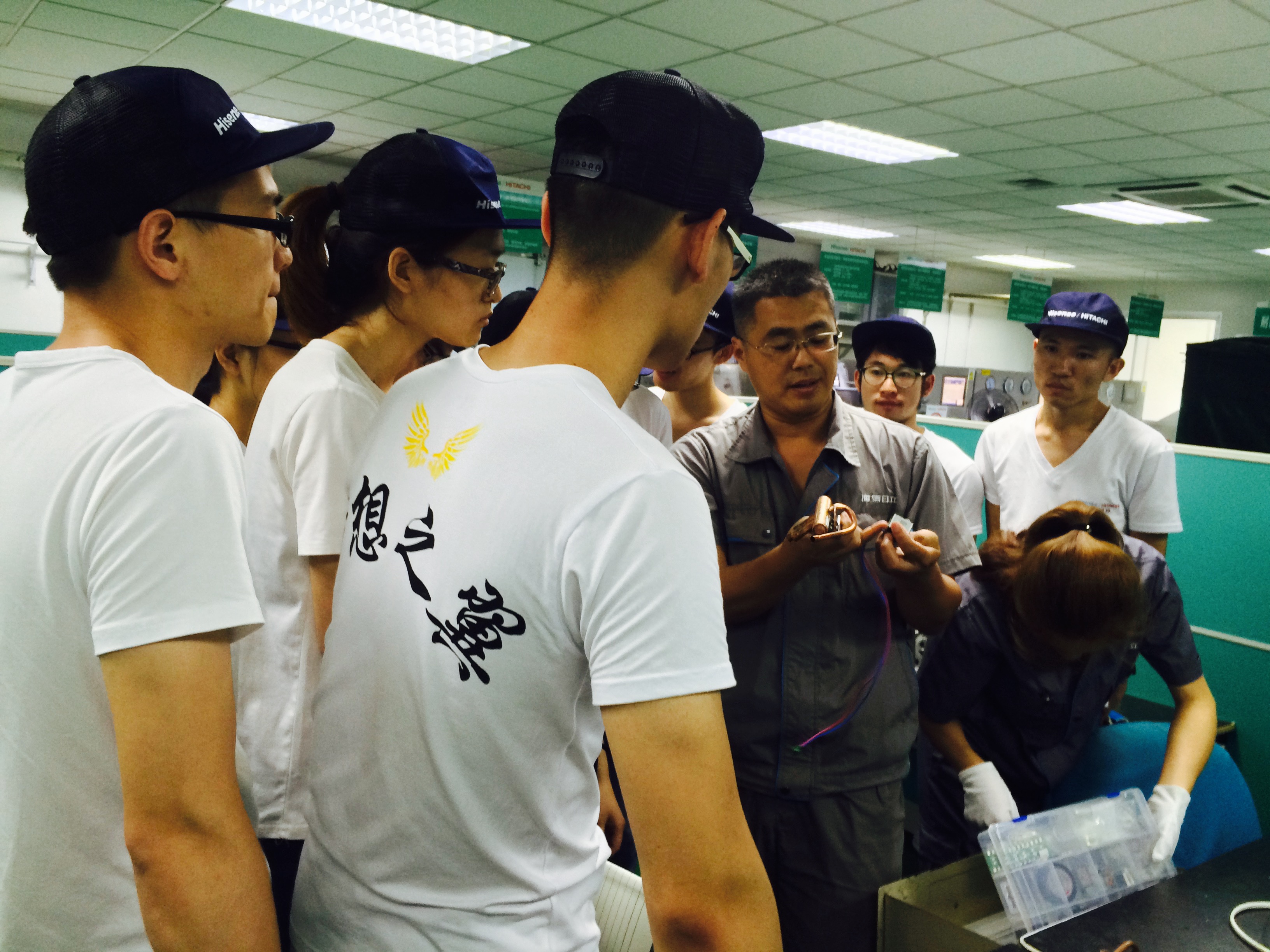 赴青岛海信日立暑期实践团的活动内容主体行将结束,团队成员们依照计划共同完成了实践日(practicingday)、技术日(utilizingday)、应用日(applicationday)的实习活动。在丰富和紧凑的安排下,同学们对海信日立公司的理念和运行有了直观的了解,同时也对自己的择业观和职业观有了新的领悟。实践日的活动集中在制造部,实践团进行了相关课程的学习和制造部流水线的参观;技术日的活动集中在品保部,实践团参观了海信日立的整机实验室,对整机测评的流程有了深入的了解,并且对多联机进行了理论课程的学习;应用日中,实践团走进部品实验室,对多联机空调零部件测评和结构有了深入的学习,并且和成人漫画