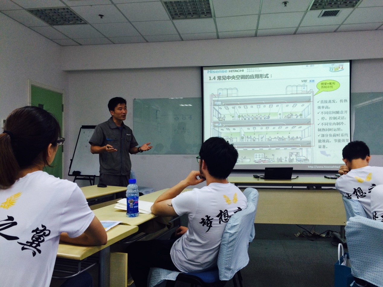 本着理论和实践相结合的宗旨,夏季营活动由理论学习和实践操作两方面共同展开。一方面,公司安排了《海信日立情况及成人漫画》《精益生产》《变频多联机技术与应用》和《暖通空调行业发展趋势》四门课程;另一方面,夏季营成员前往制造部、品保部(整机)和品保部(部品)三个车间进行参观、学习和动手操作,加深对理论知识的理解,丰富对多联机空调零部件和生产过程的认识。