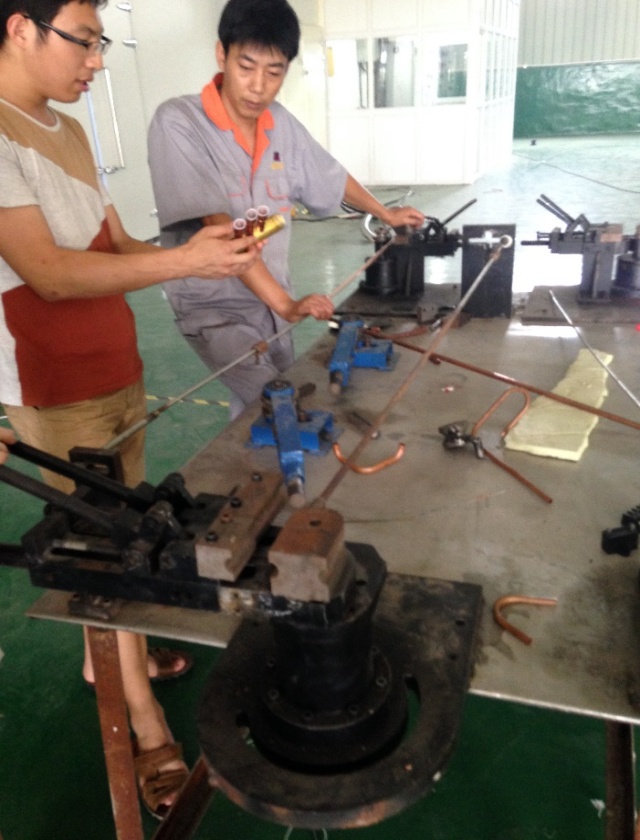 7月24日,隆科莱福节能设备有限公司与实践团队举行了技术总结暨工作经验交流会,出席会议的有公司负责人刘经理,综合管理部左部长,技术部贾部长以及实践团队一行五人。首先,领队刘静明代表实践团队向公司管理层做了技术报告,详细介绍了实践团队两周以来的工作成果以及各个解决方案的依据。贾部长指出:技术报告总结得很到位,有些解决方案灵巧、实用,公司接下来可以通过试验进行验证方案的可行性。接下来,刘经理为实践团队讲述了自己工作、创业的历程。他讲到,在第一份工作的第二年,公司遇到技术难题,由于是国外技术,公司内没有人可以解决。刘经理主动承担,迎难而上,在车间反复设计、试验,最终攻克了技术难题,拯救了公司;同时收获了最核心的技术经验,以后的科研攻从中受益无穷。他强调,走向工作岗位一定要加强团队协作,设计部设计出来的方案需要经过工艺部的评判,等待生产部门的装配,质检部门的审核,各个环节都需要协调、配合,才能够制造出高性能、安全可靠的产品。在谈及自己的创业经历时,他谈到选择热泵热水器作为创业的着力点一是因为热泵热水器效率高,而且使用空气的低品位热能,节能环保;二是当时热泵热水器还存在诸多技术难题,在中国处于发展阶段,通过巩固自身技术,抓住机会,大有可为。