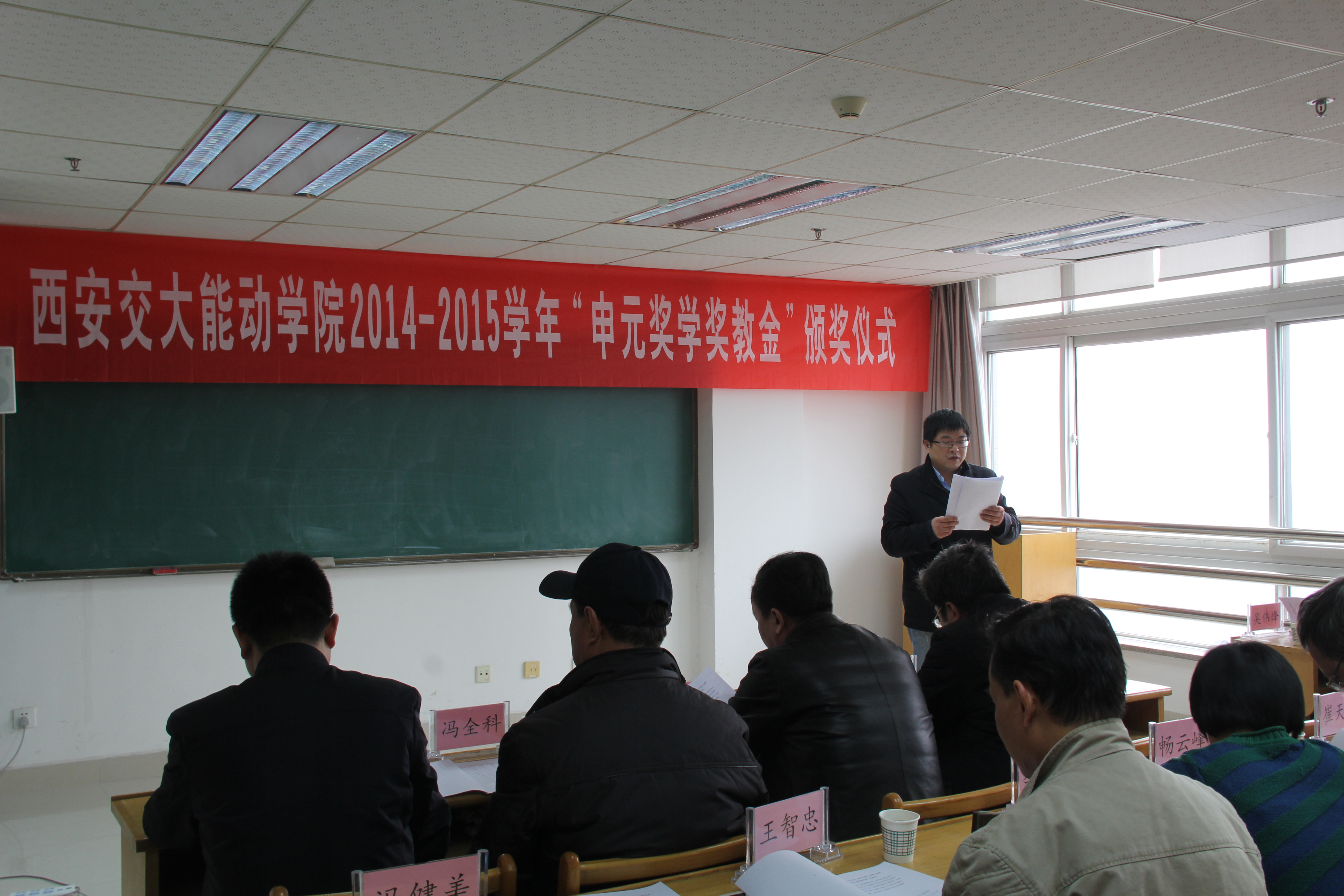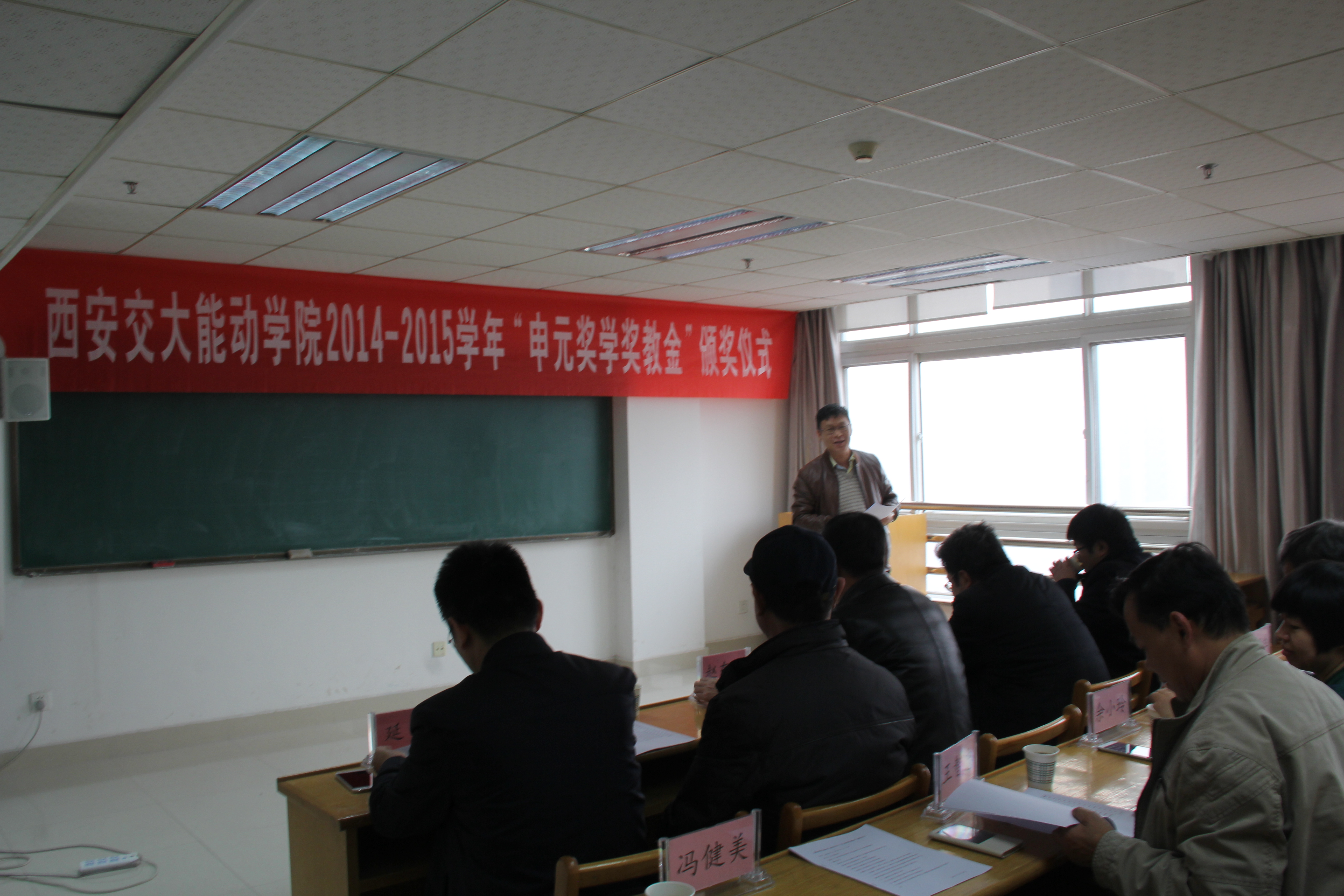 压缩机工程系支部书记、副系主任吴华根副教授宣读2014-2015年度“申元奖学奖助金”表彰决定及获奖师生名单