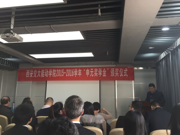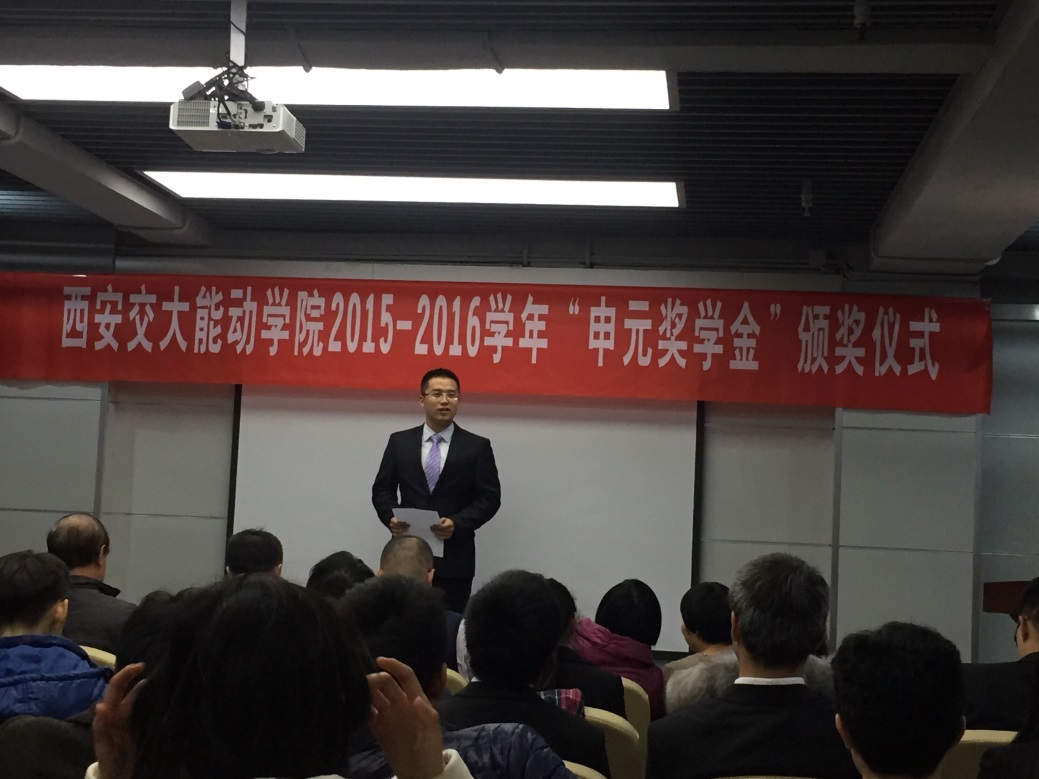 压缩机系研三的周瑞鑫同学代表获奖者进行了发言,他介绍了沈阳气体压缩机有限责任公司的概况,描述了他自己在两年多科研学习过程中的心得体会。他表示此次申元奖学金的获得是对过去一年来工作的肯定,也是对未来的期望,获奖的同学一定要再接再厉,再创佳绩。期间赵东升学长也做了发言,他希望同学们可以像当年他当年在西交大学习时一样,深入学习专业知识。“干一行爱一行”,在未来可以为压缩机行业的发展舔砖加瓦,为学校的发展做出贡献。