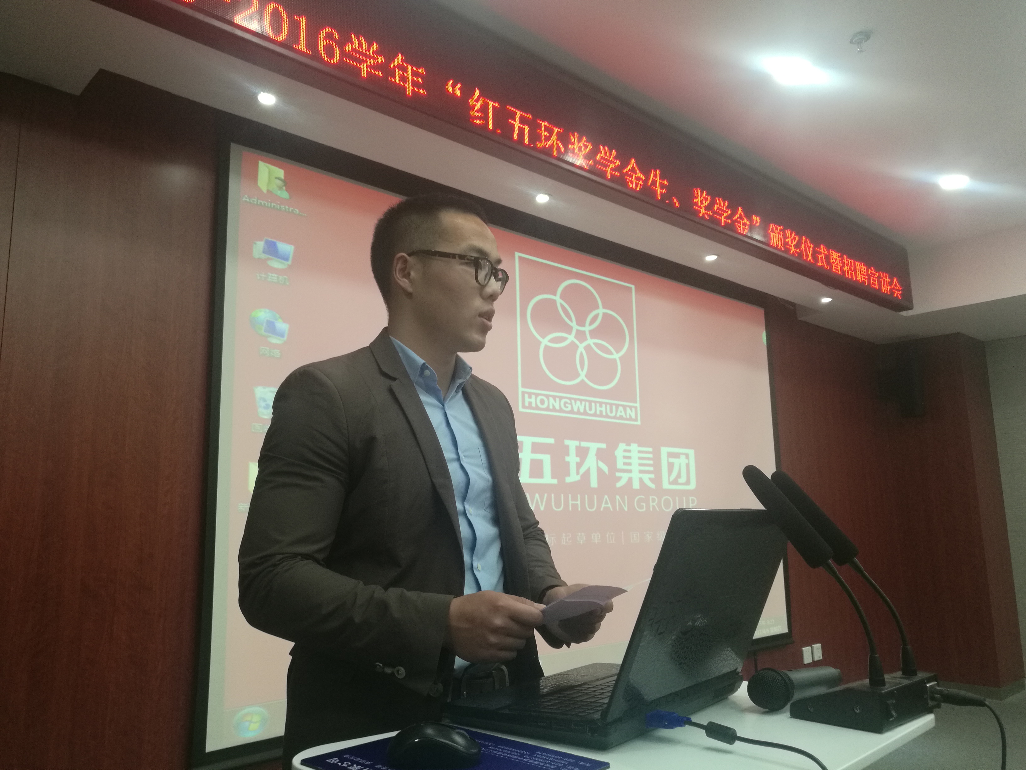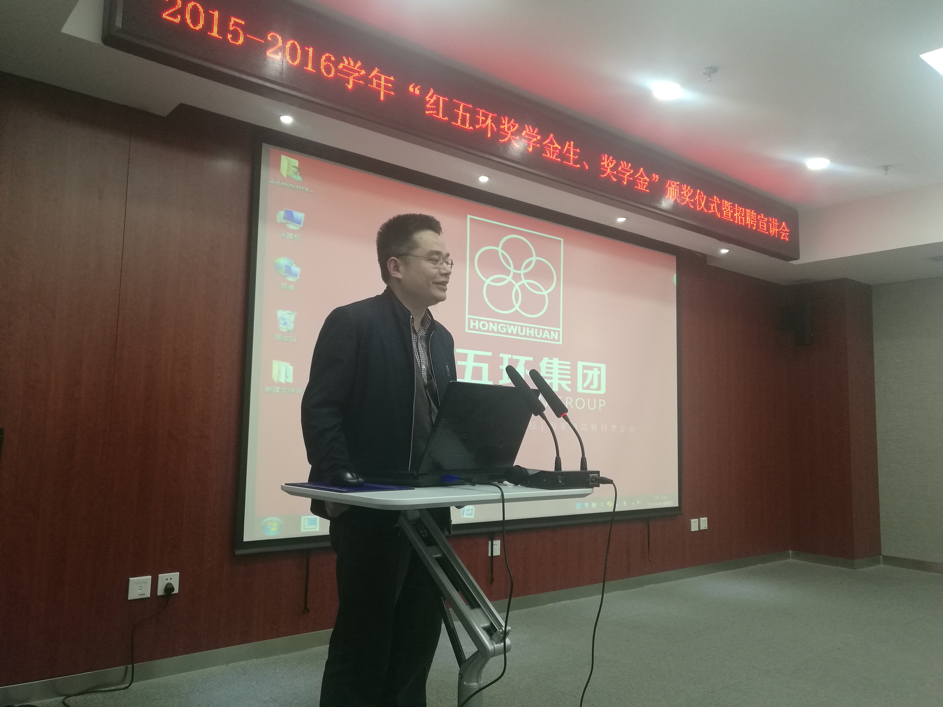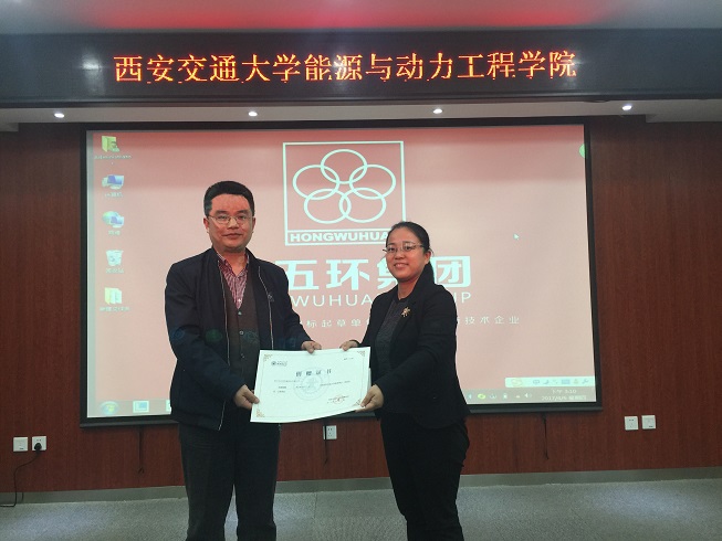 颁奖仪式上,硕4014班陈祥同学代表全体获奖学生发言,他在发言中向红五环集团长期以来对我校奖、助学基金和各项学生活动的大力支持表示了感谢。他表示,“红五环奖学金”的设立为全体获奖学生带来了物质上的支持与精神上的鼓励,让他们在前进的道路上多了一份奋进的力量。