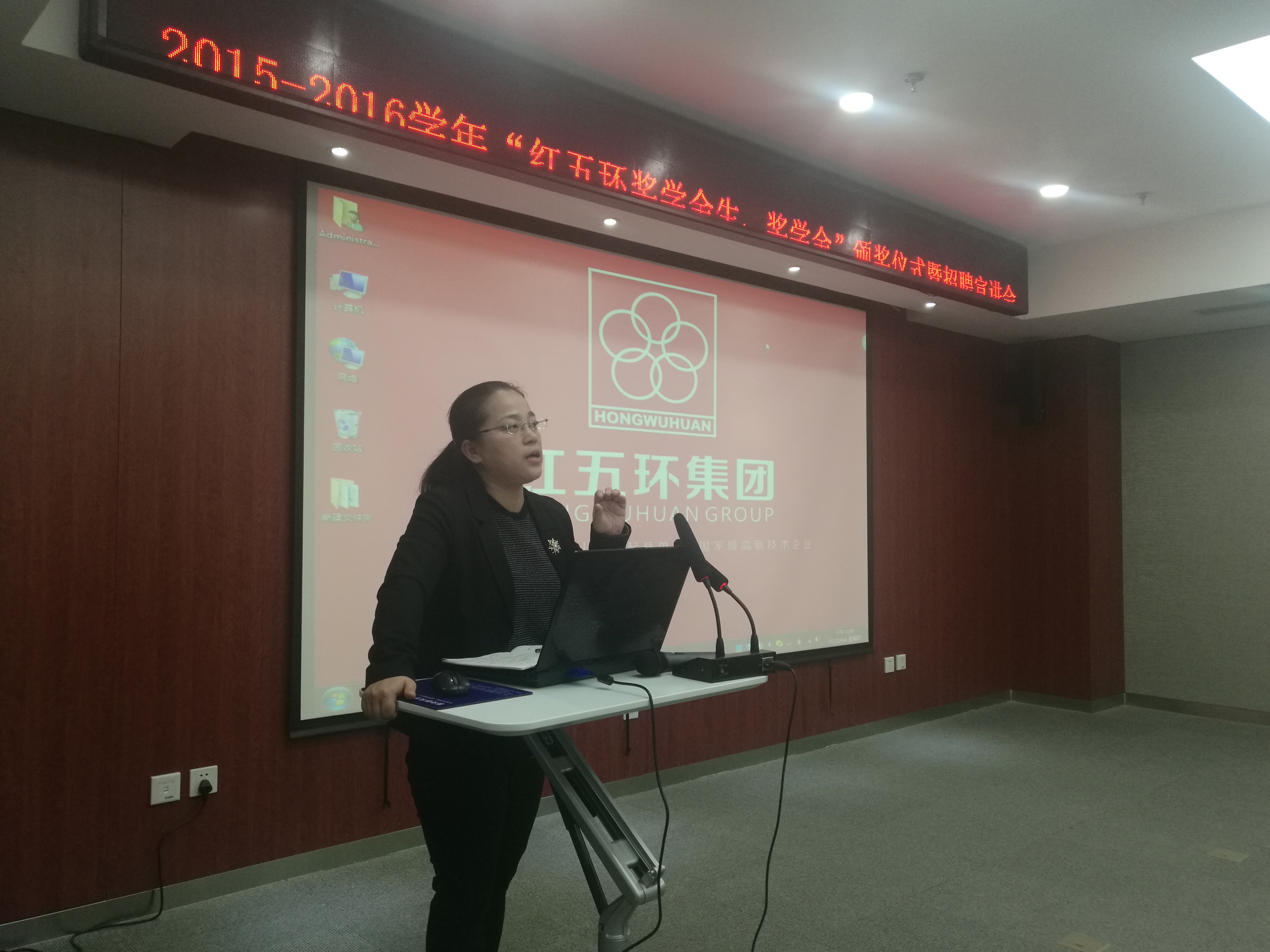 苏沁女士代表红五环集团做了致辞,她从教科研结合、人才培养与学生活动三个方面回顾了红五环集团与我校多年来所展开的合作与交流,说明了公司各项主营业务的发展状况与远景规划,详细介绍了红五环集团在人才延揽和培养方面所做出的努力。