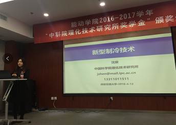 的优秀学子报考理化所深造。之后沈俊研究员就自己的研究领域做了一场“磁制冷热力循环理论与方法”的学术讲座,内容包括磁制冷的基础研究、关键技术、产业化应用等方面,让在座的同学们对面向解决环保问题的新型绿色磁制冷技术有了初步了解、对未来的研究方向有了更多的选择。