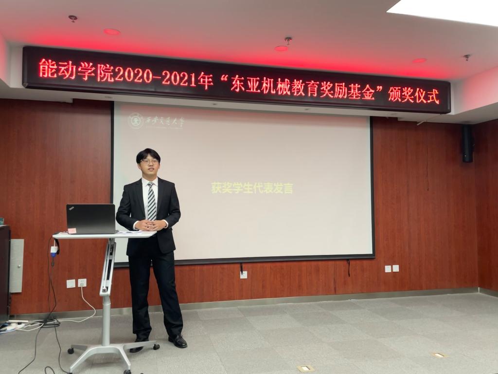 厦门东亚机械工业股份有限公司董事、总经理韩文浩先生随后致辞,他对获奖学生表示衷心祝贺,结合自己的学习和工作经历,鼓励学生们要努力成才,积极向上,以青春梦想和实际行动成长为社会栋梁。随后他介绍了企业的基本情况以及在产品研发上的最新进展,并热诚欢迎大家加入厦门东亚机械工业股份有限公司,与公司一起为国家和社会的发展做出贡献。