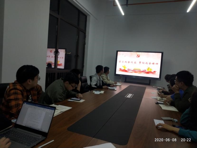 会议第二项,由马道洋同志分享今年部分“两会”内容的学习。马道洋同志从今年“两会”的2019年政府工作报告和2020年年度工作计划出发,带领支部成员学习了今年疫情发生以来所造成的部分经济影响以及2020年度工作计划中与大家息息相关的一些重要举措,如“减税降费,高等院校扩招,高校毕业生就业政策”等。另外,马道洋同志带领支部成员重点学习了今年“两会”关于国家安全和香港特别行政区和平稳定的一系列政策和立法措施。