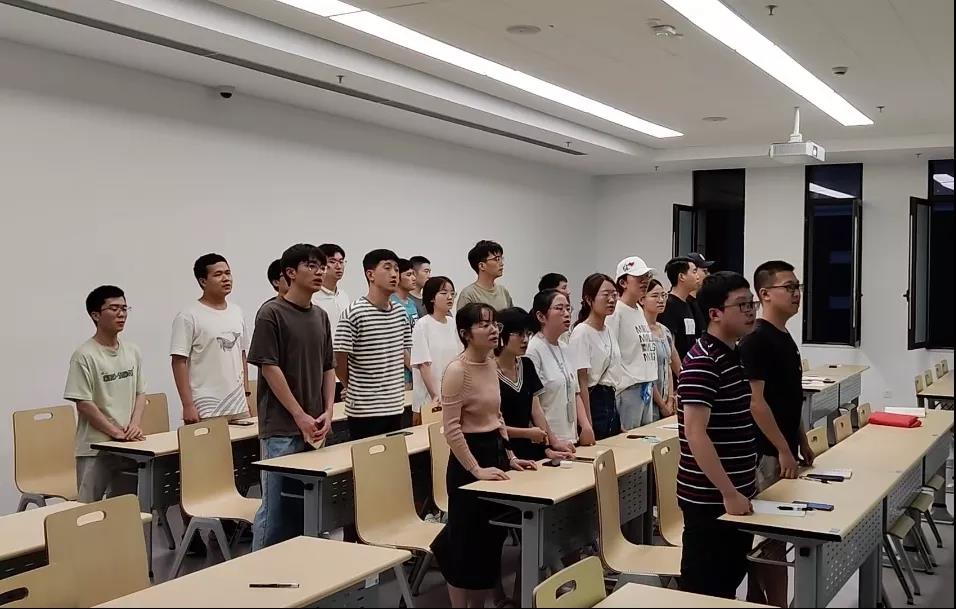 在会议第三部分,全体参会人员共同合唱了经典红歌《歌唱祖国》,这首歌气势雄壮、热情豪放、雄壮有力,唱出了新中国的朝气蓬勃、蒸蒸日上的气势,和人民斗志昂扬建设祖国的豪情。参加本次组织生活会的人数虽然只有三十人左右,但仍用洪亮的声音唱出了毕业后建设祖国的豪情。