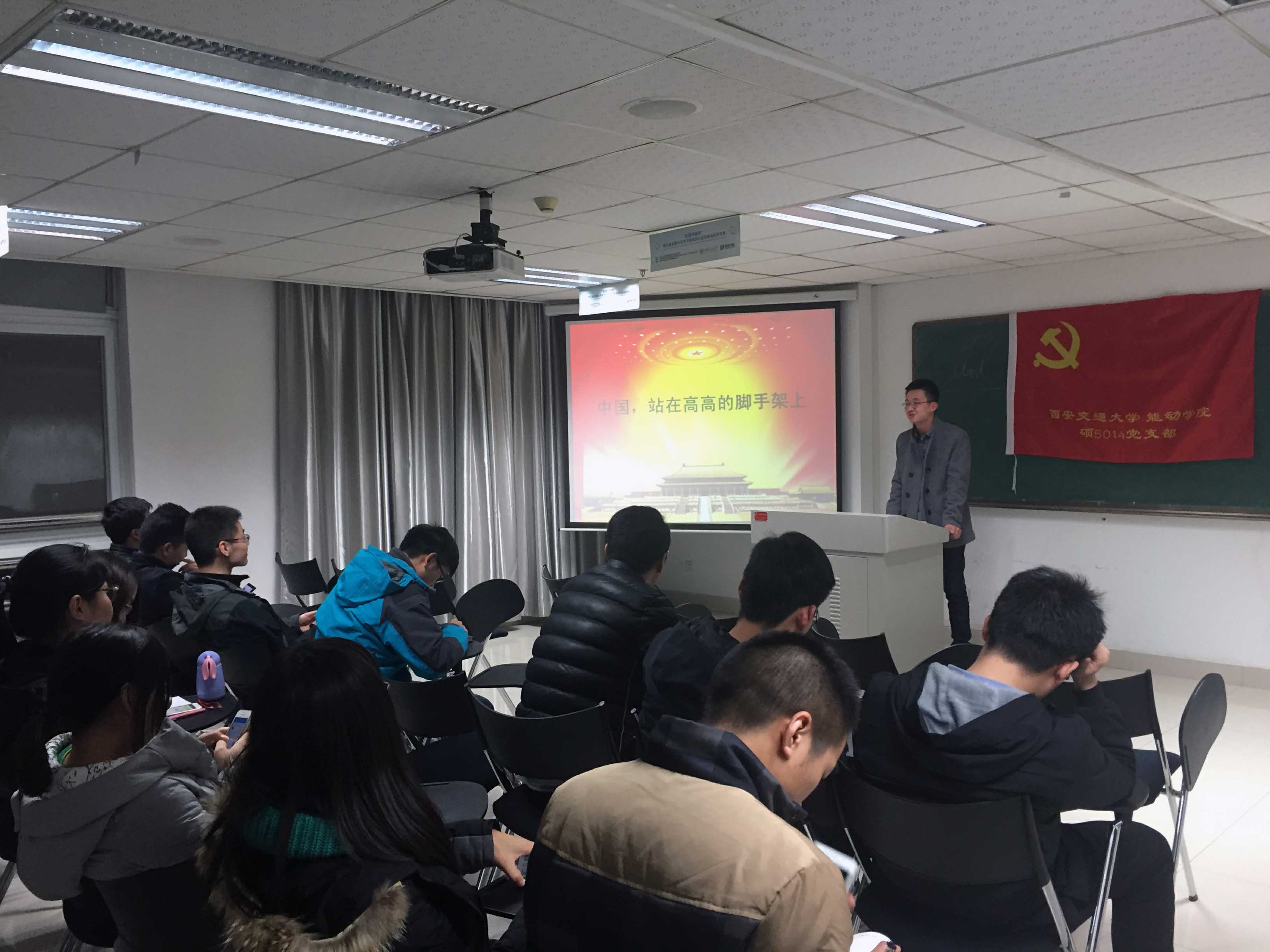 支部成员踊跃参与,演讲过程声情并茂,朗诵节奏扣人心弦。在激扬的文字中,我们仿佛看到了红军战士浴血奋战的恢弘场面,在凝重的声音里,我们仿佛听到了革命先烈凯旋归来的胜利呐喊。彭小娜同志朗诵的《七律·长征》让每位支部成员想起了去年习总书记在纪念红军长征胜利80周年大会上的讲话,雷凡同志以“伟大领袖毛泽东”为主题的演讲让人们对伟大领袖毛主席的敬仰之情更多了几分,霍长江同志朗诵的《中国正站在高高的脚手架上》为每个支部成员展现了一副新中国正在克服困难建设美丽中国的宏伟场景。从“铁血长征”到“人民万岁”再到“青春中国”,支部成员们的演讲与朗诵紧扣时代脉搏,勾勒出了近现代中国的历史人文画卷。红色经典勾起的回忆与联想,感染了每一位支部成员。