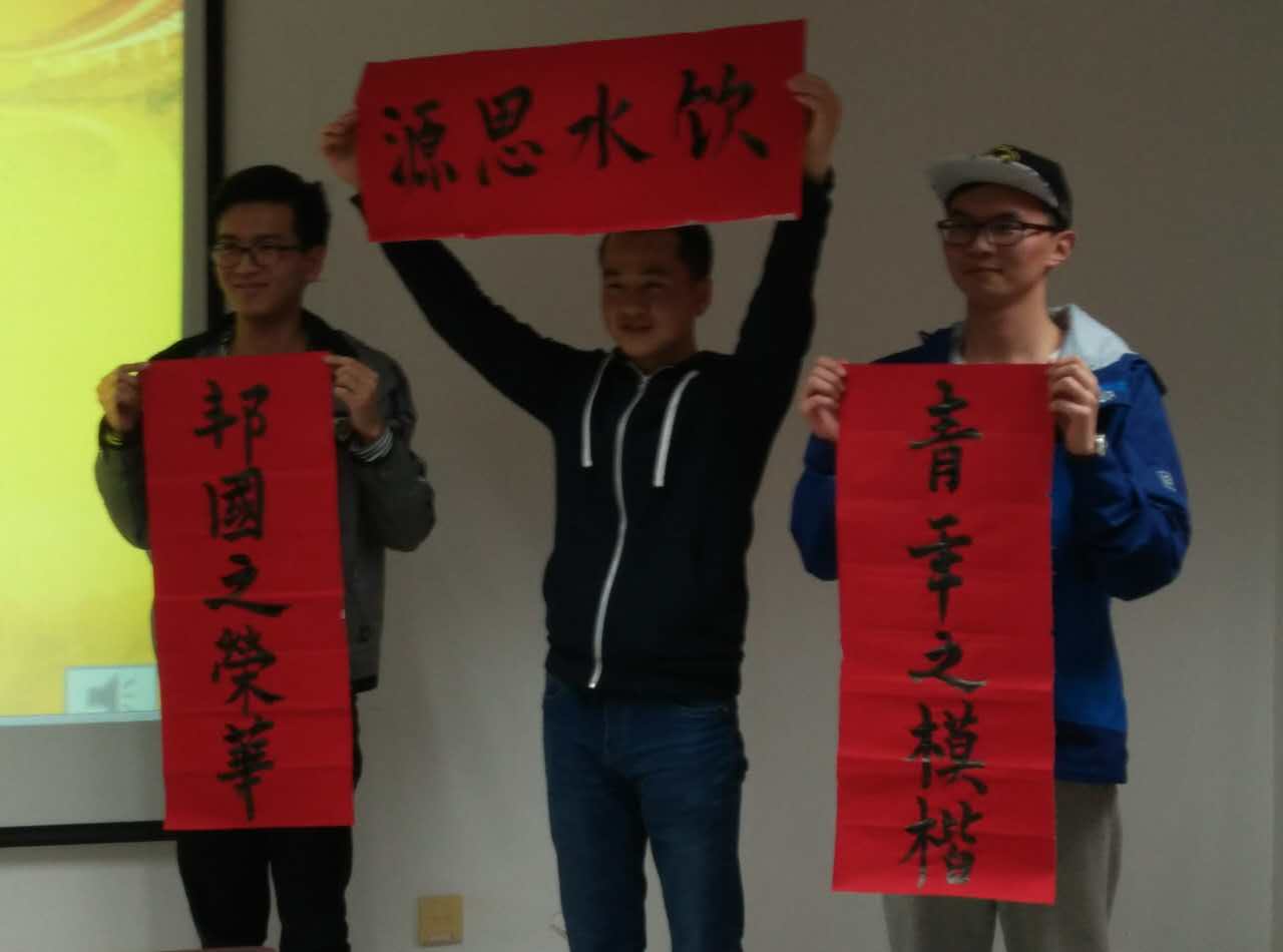 “青年之模楷,邦国之荣华”,支部党员任兴杰代表全体支部成员,笔墨挥洒,以一幅对联“献字交大”。传统书法艺术和校歌的完美结合,老一辈交大学子风范和现代学子进取精神的碰撞,笔锋运转之间,支部成员已将饮水思源的教诲谨记心中。