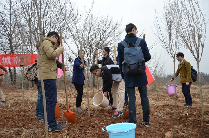 本次植树造林活动从活动的发动阶段、整地阶段、种植阶段、还有后期的管护阶段等都进行了严密的部署。12日早上6点,蒙蒙亮的清晨,太阳还没有升起,参加植树活动的支部志愿者们备齐干粮,在学校东南门集合,出发前往目的地。寂静的山头在鲜红的印有环保宣传标语的横幅和彩旗的印衬下显得生机勃勃。同志们带着满腔的热情刚下车便立刻活动开来,同志们分工协作,整齐有序的种苗、整地、浇水,现场气氛非常热烈。大家手持铁锹、水桶,干劲十足,将一棵棵充满生机和希望的树苗植入地里的同时也植下了自己绿色的希望之春,到处充盈着同志们的欢声笑语。
