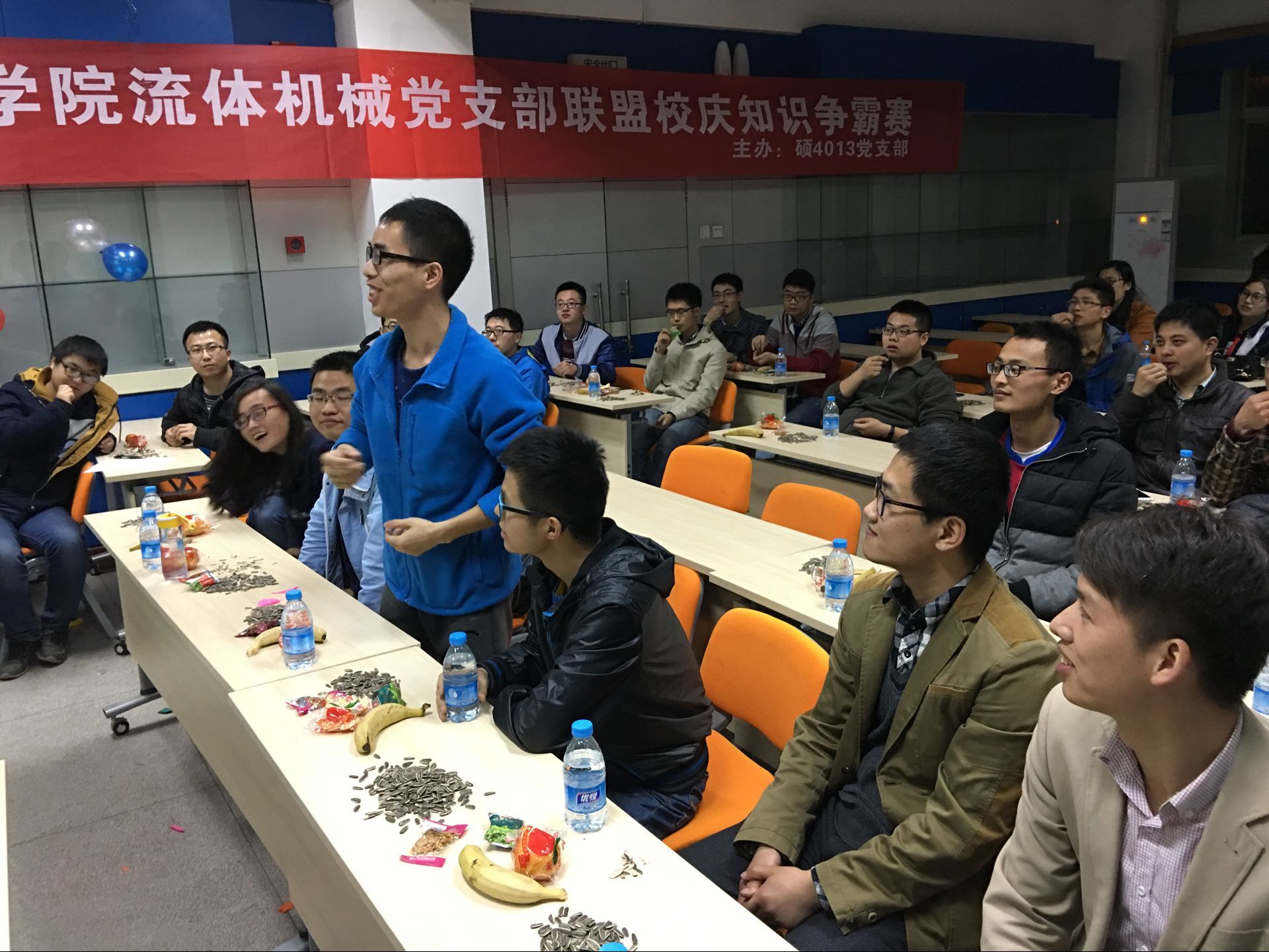 每个支部派出两名成员担任答题主将,以团体形式参加此争霸赛。争霸活动分为抢答与你来比划我来猜两个环节。抢答环节中,硕5014班的雷凡同学凭借着宽阔的知识面以及对交大校史的全面了解,频频抢得答题机会并轻松答对。作为东道主的硕4013班参赛代表何有为与郑召利,双剑合璧,开启头脑风暴,在这一环节最终得分与独当一面的雷凡所在硕5014代表对得分相当。而硕3014支部代表队在此环节稍显落后。