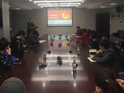 随后,硕6018班团支部书记脱晓冰作为学校“活力团支部”和“魅力团支书”的代表向各团支部书记介绍自己的经验。他曾带领硕6018团支部在2017年获得“活力团支部”称号。他介绍自己的经验时提到,一方面,团支书在开展工作时要做好活动的整理工作,这样更有利于团支部的总结和提升;另一方面,团支部不仅要在团组织建设上努力做好工作,更要发挥好团组织的思想引领作用,让组织成员更好地接受先进思想的教育。石杨根老师提出了对所有团支部书记的建议和希望。他提到,16级硕士团支部给我们树立了很多优秀的榜样,有非常多的团支部能够积极开展团组织活动,获得了省、国家级的表彰,值得我们学习,希望17级团支部能够接好接力棒,更好地发挥党联系青年的桥梁和纽带作用。
