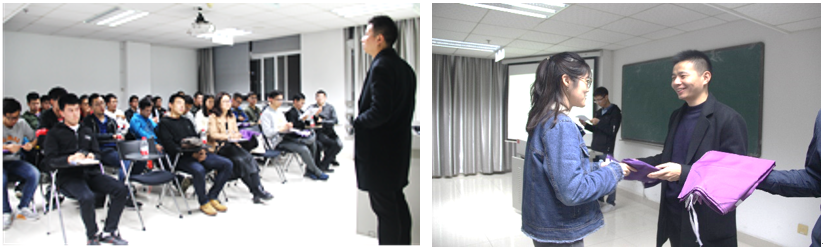 授旗仪式上,石杨根老师向各班负责人授予院旗并发表讲话。在讲话中,他首先肯定了本次活动的积极意义,表示作为2017级研究生新生,同时也是交大第121代学生,应该了解成人漫画