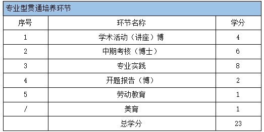 培养环节包括课程学习和必修环节。其中课程学习应至少完成30学分,必修环节18学分。课程由学位课和选修课组成,必修环节包括“学术活动(讲座)”、“中期考核”和“专业实践”等。