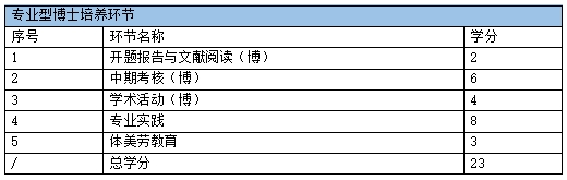 注:非全日制专业学位博士免修体美劳教育。同等学力博士可免修全部环节