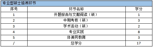 注:非全日制专业型硕士免修体美劳教育。同等学力硕士免修全部环节