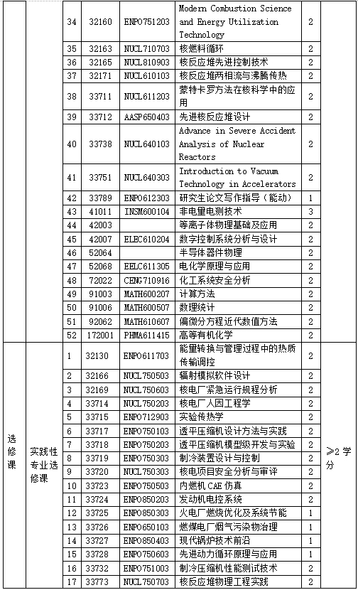 注:研究生论文写作指导(能动)必修课程,同时还必须修完:2学分校企共建课程。