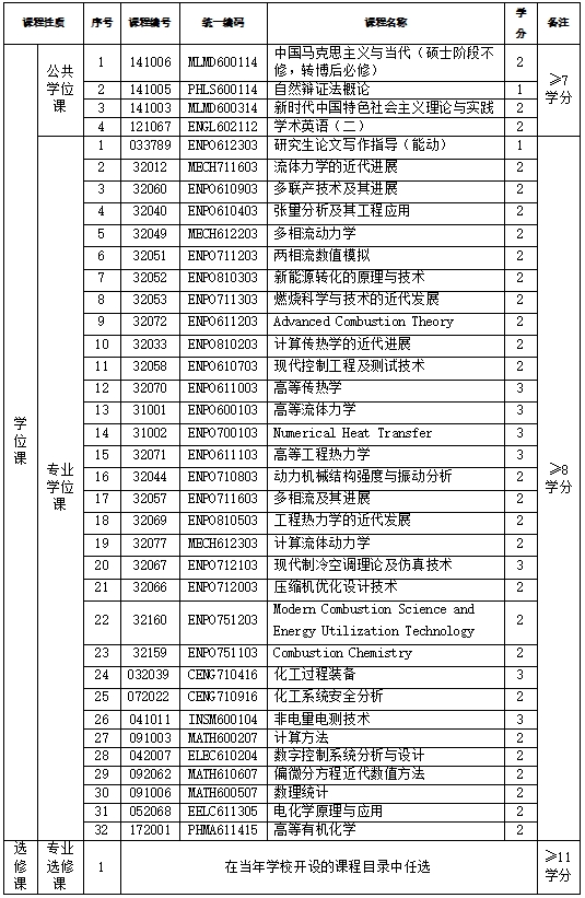能源与动力工程学院动力工程及工程热物理(080700)学术型博士培养方案