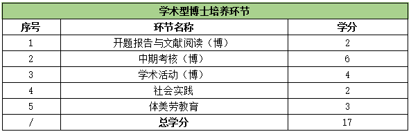 注:非全日制学术型博士免修社会实践、体美劳教育。同等学力博士可免修全部环节。