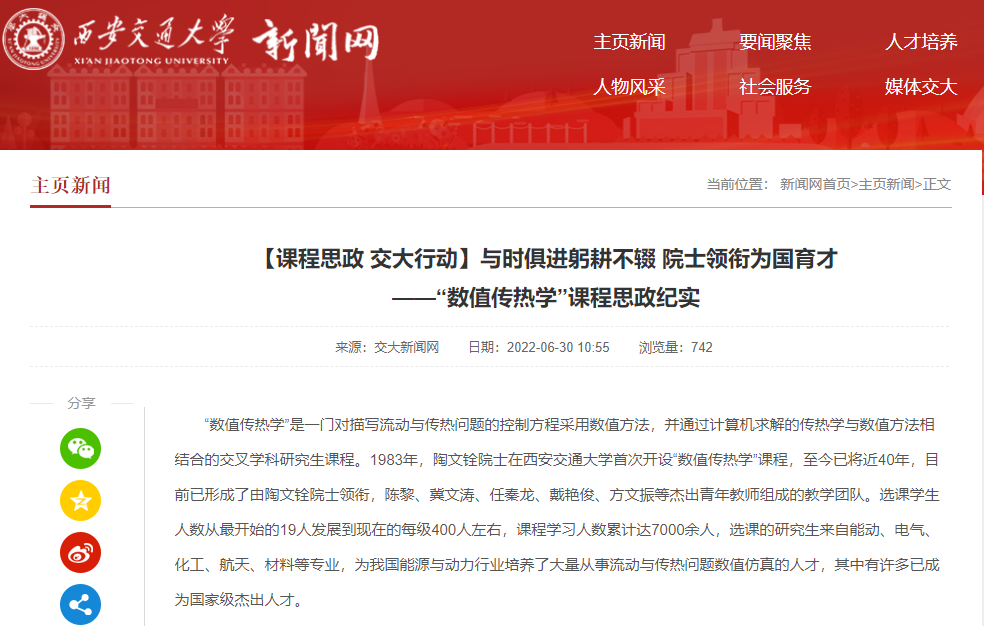 成人漫画 新闻网2022年6月30日以“与时俱进躬耕不辍 院士领衔为国育才”为题,介绍示范中心教师开展课程思政教学的情况。