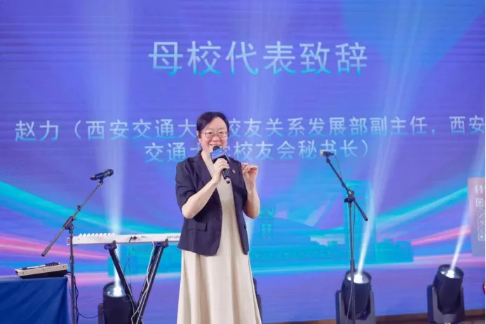 校友会秘书长赵力致辞。她表示,希望加强校友与母校的联络,充分发挥行业校友优势为学校双一流建设和国家经济发展贡献交大力量。