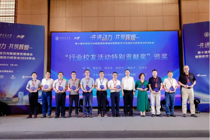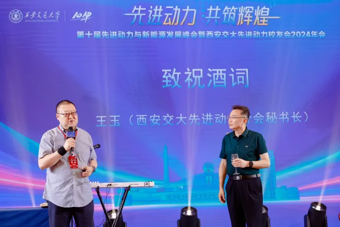 晚宴环节还举行了峰会承办方交旗仪式,经过申请和先进动力校友会讨论决定,第十一届先进动力与新能源发展峰会暨西安交大先进动力校友会2025年年会将于2025年8月第一个周六在苏州昆山举行,由校友企业昆山市易泰汽车科技有限公司承办。