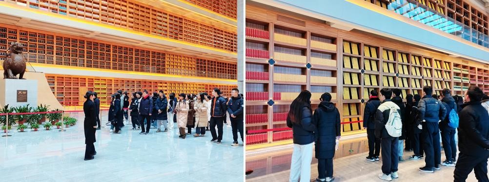 上午,全体师生共同前往西安国家版本馆参观学习。该馆所收藏的“版本”不仅涵盖了古籍的刻本、印本、写本,更拓展到甲骨简牍、碑帖拓片、方志家谱、影音影像、现代出版物等多种形态,生动呈现了中华文明的传承与发展轨迹。